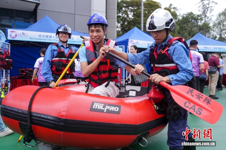 4月11日,今年“全民国家安全教育日”到来前夕,香港民众安全服务队(简称“民安队”)总部举行开放日活动,香港市民通过参与虚拟实境救援、摊位游戏、搜救器材展示等互动体验活动,加深对民安队的认识,增强维护国家安全意识。图为一名市民体验民安队的搜救艇。