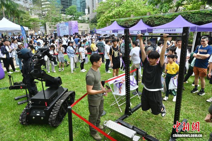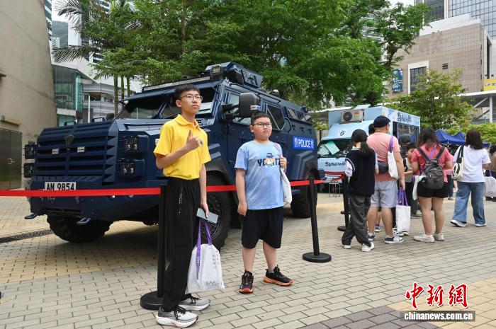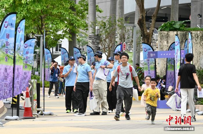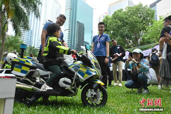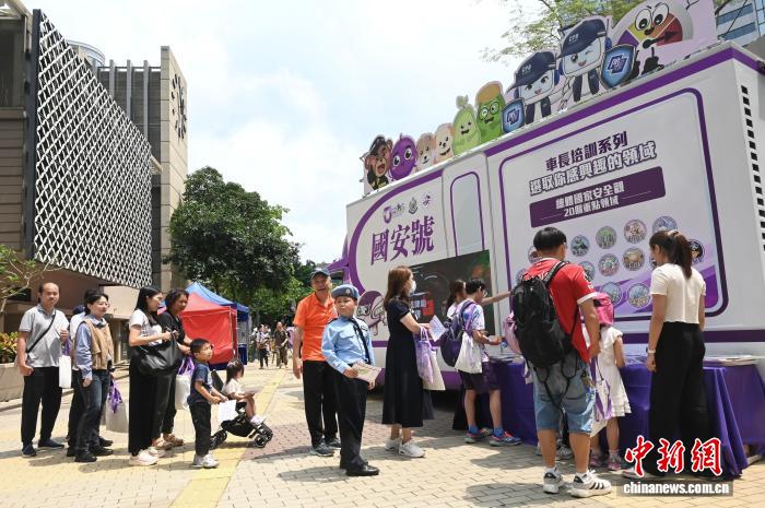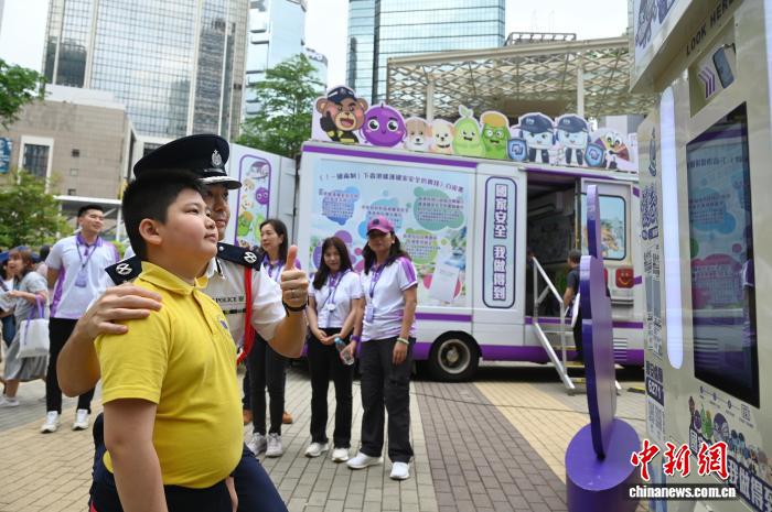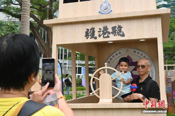 4月12日,香港特区政府警务处举办“全民国家安全教育日2026暨警民同乐日”。活动以“护港远航”为主题,设有仿照船舶造型的“护港号”展览区及“NSpeed国安号”宣传车。今年4月15日是第11个“全民国家安全教育日”,香港特区政府保安局辖下8支纪律部队和辅助部队近期陆续举办开放日活动,增强市民维护国家安全意识。图为警务处助理处长郭嘉铨与一名男孩在互动设施前合影。中新网记者 李志华 摄