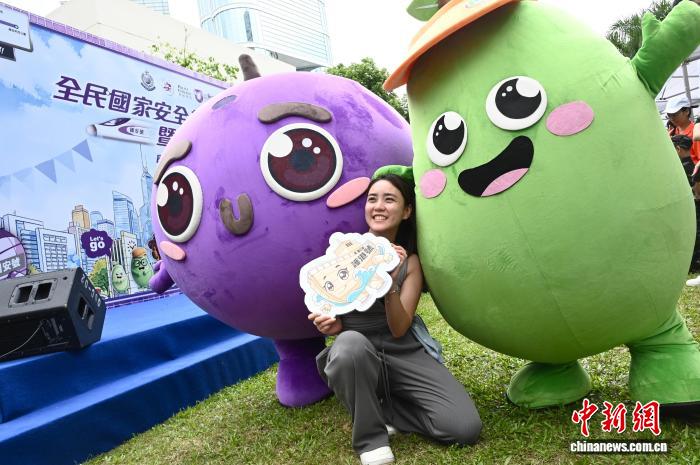 图为一名女士与香港警方的吉祥物合影。中新网记者 李志华 摄