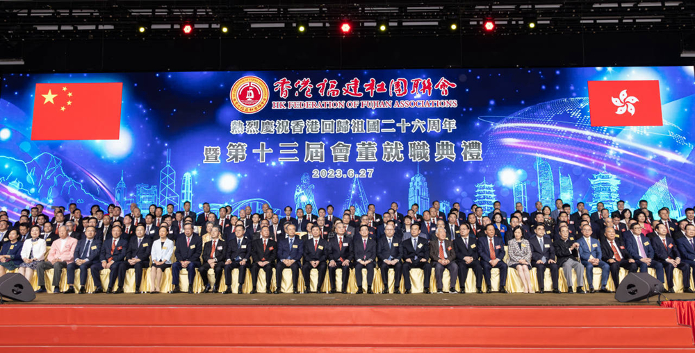 本网讯 6月27日,香港福建社团联会庆祝香港回归祖国26周年暨第十三届会董会就职典礼在香港会展中心举行。香港特区行政长官李家超、福建省委书记周祖翼、中央政府驻港联络办主任郑雁雄出席并致辞。