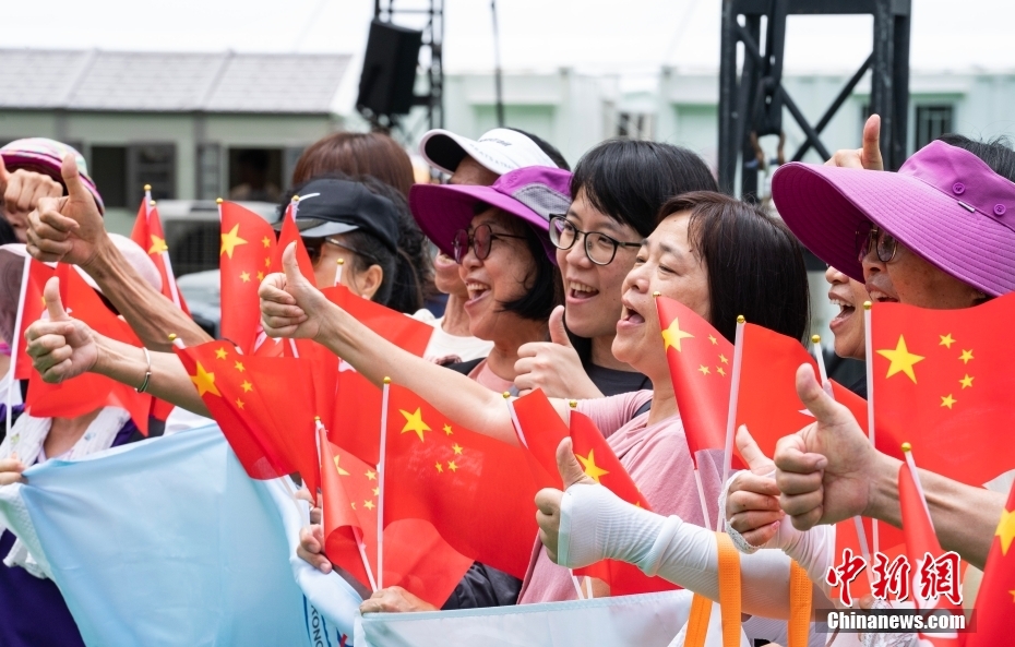 6月30日,香港各界庆典委员会“庆祝香港回归祖国26周年”系列活动在维多利亚公园开启。图为前来参观的市民为祖国点赞。