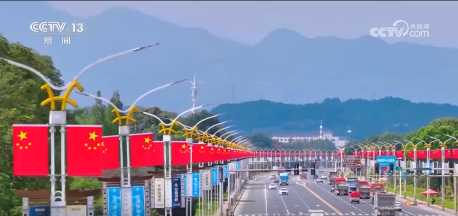 在四川绵阳北川新县城,从城市主干道到商业街区,都挂满了鲜艳的五星红旗。不仅为城市增添了浓厚的节日氛围,更点燃了市民心中炽热的爱国情怀。