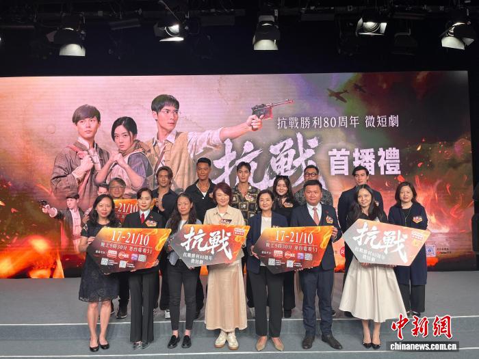 10月17日,由香港特区政府新闻处和香港电台联合制作的纪念抗战胜利80周年微短剧《抗战》首播礼在香港举行。图为嘉宾合影。 华净雯 摄