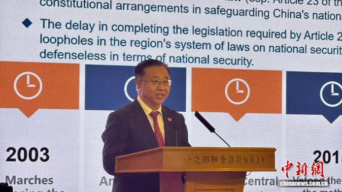 3月3日,外交部驻港公署为外国驻港领团、商会和中外媒体举办《“一国两制”下香港维护国家安全的实践》白皮书专题宣介会,外交部驻港公署特派员崔建春作主旨宣讲。 中新网记者 戴小橦 摄